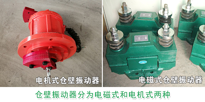 倉壁振動器分為電機(jī)式倉壁振動器與電磁式倉壁振動器兩種。