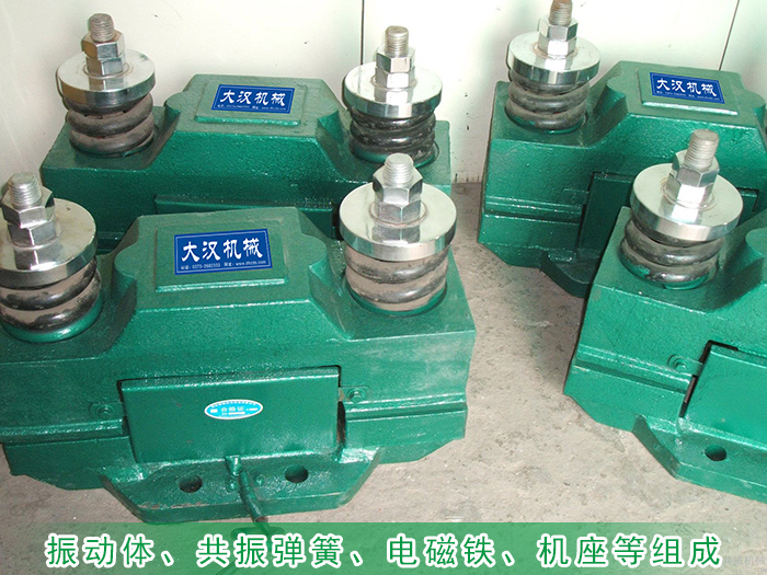 電磁式倉振振動器:由振動體、共振彈簧、電磁鐵、機座等組成。